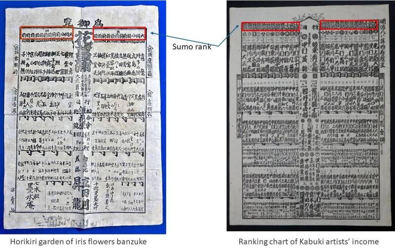 The next two examples show a Banzuke for iris and a Banzuke for the income of Kabuki artists.