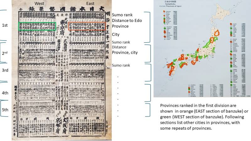 But, whereas Sumo rankings result from numbers of successes and defeats, what is the rationale behind this ranking of provinces? We do not know. Can you help?