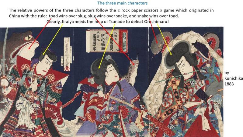 The Jiraiya fashion started with a literary book in 1806: Jiraiya’s family was wrongfully condemned and lost its samourai rank, and Jiraiya is looking for revenge and is fighting to reclaim his social position.