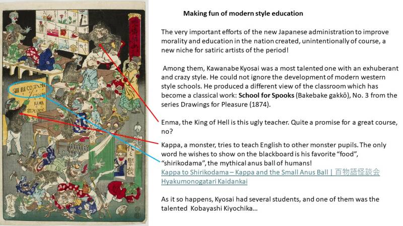 This woodblock production,150 years ago, may lead to believe that, to some extent, present difficulties of some people with Education and Moral are inherent to the human condition. What do you think?