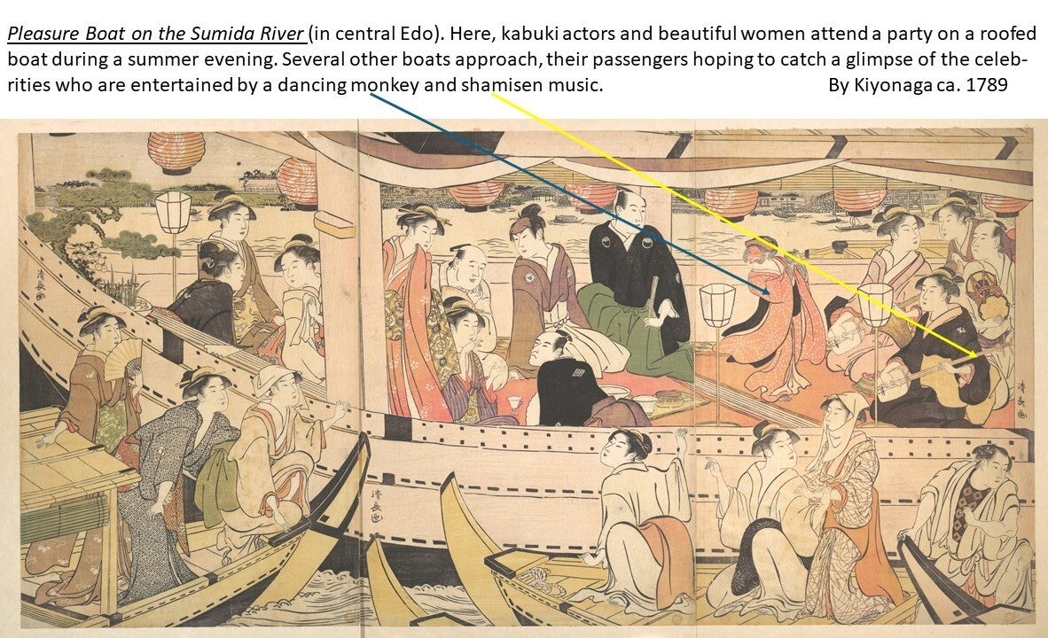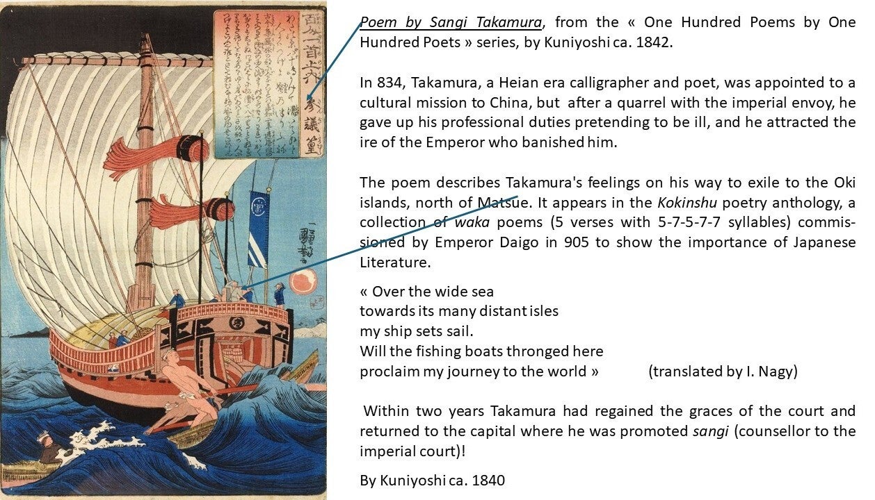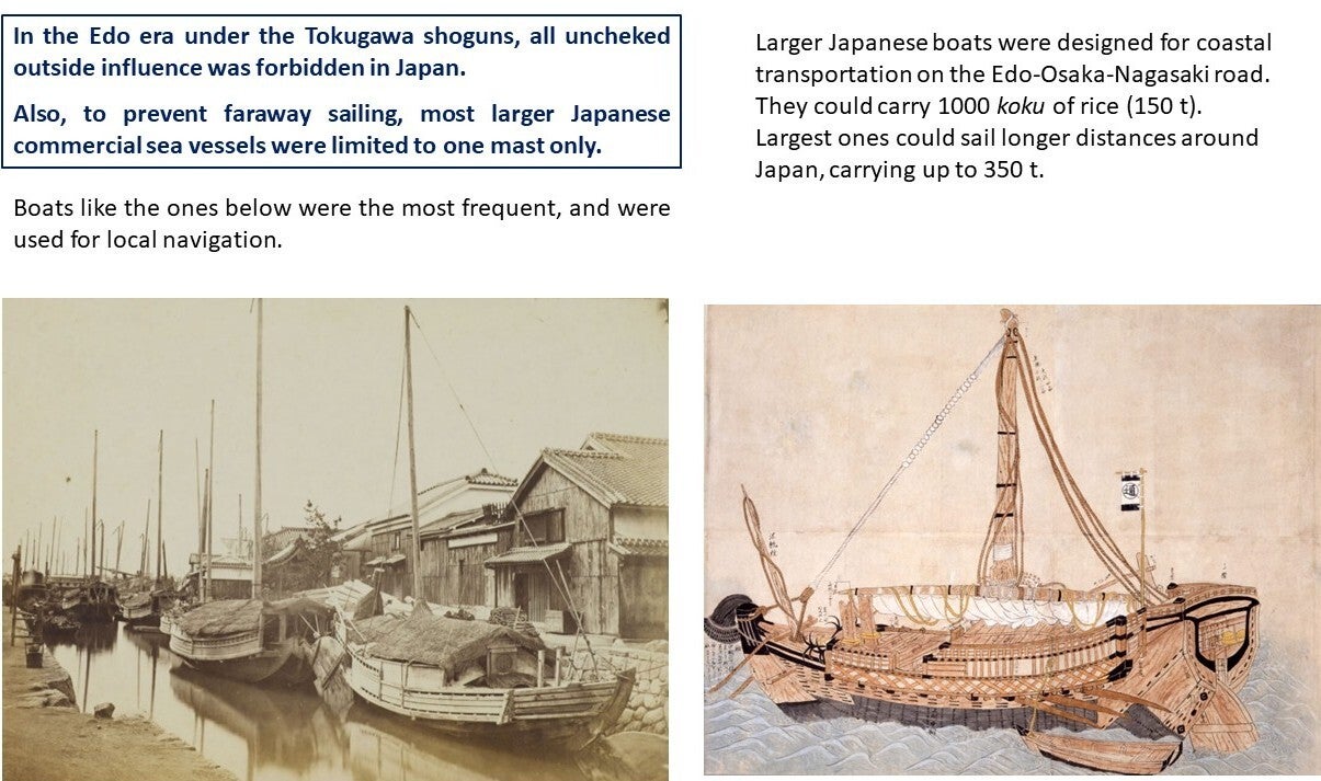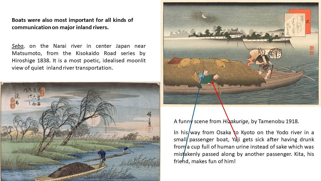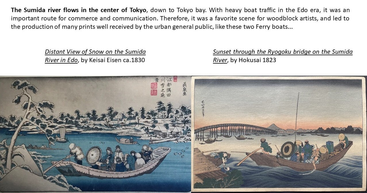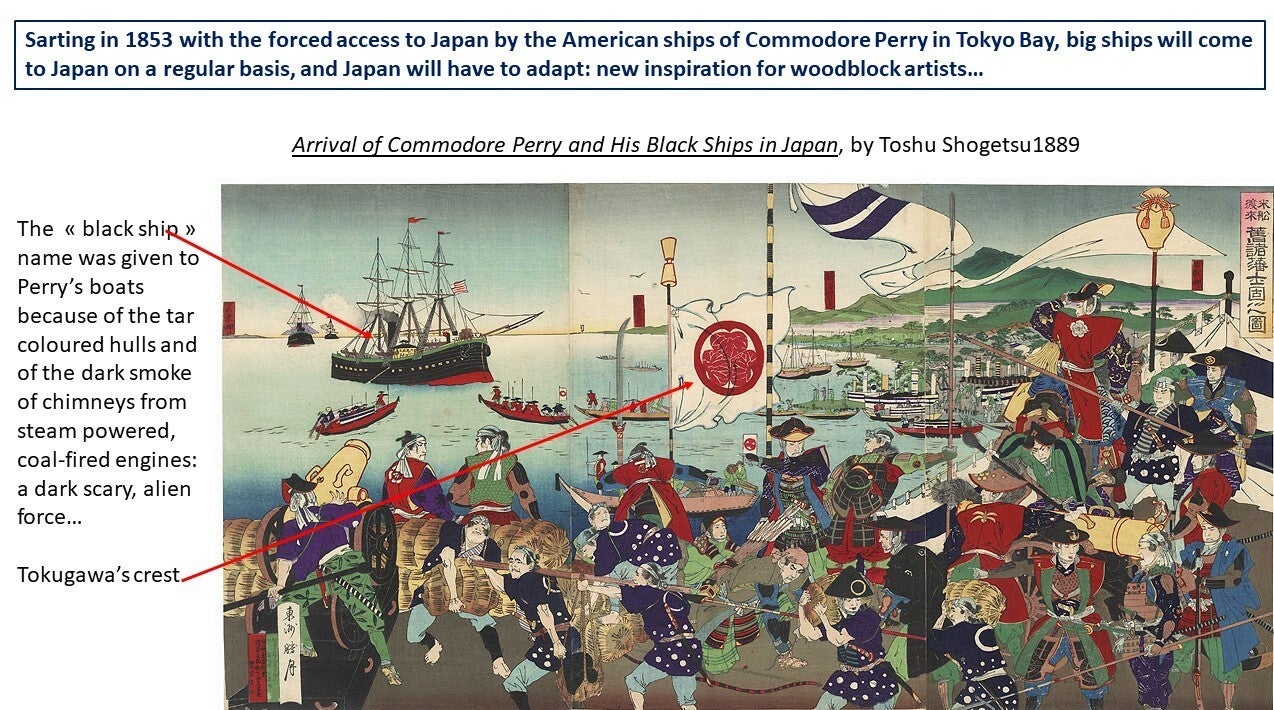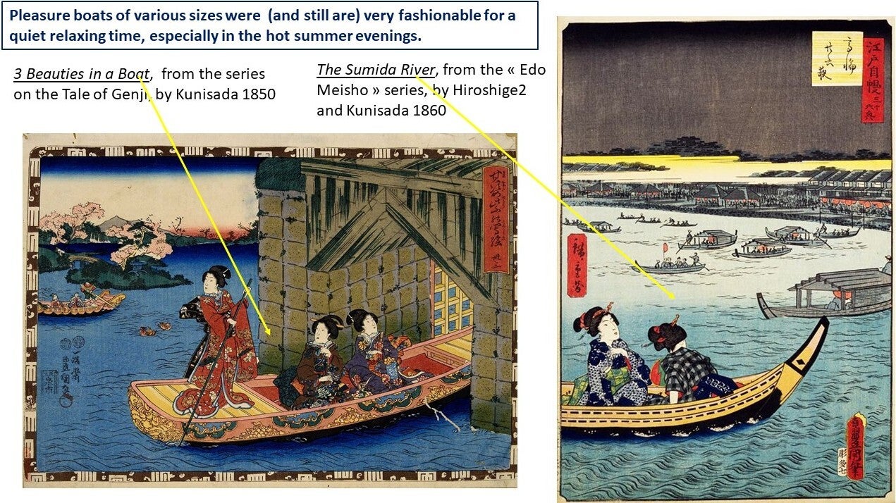 Japan is composed of four major and over 400 other inhabited islands. Sea communications and resources, plus inland river connections, were essential to the life of the country at a time when land travel was uneasy. As a consequence, Ukiyo-e artists produced many prints of scenes with all kinds of boats. Their inspiration was enriched in the Meiji era by the wide opening of Japan to foreign ships…