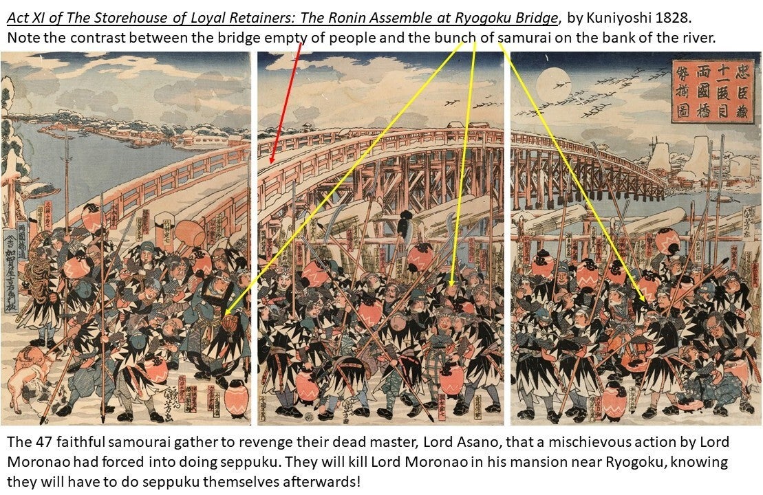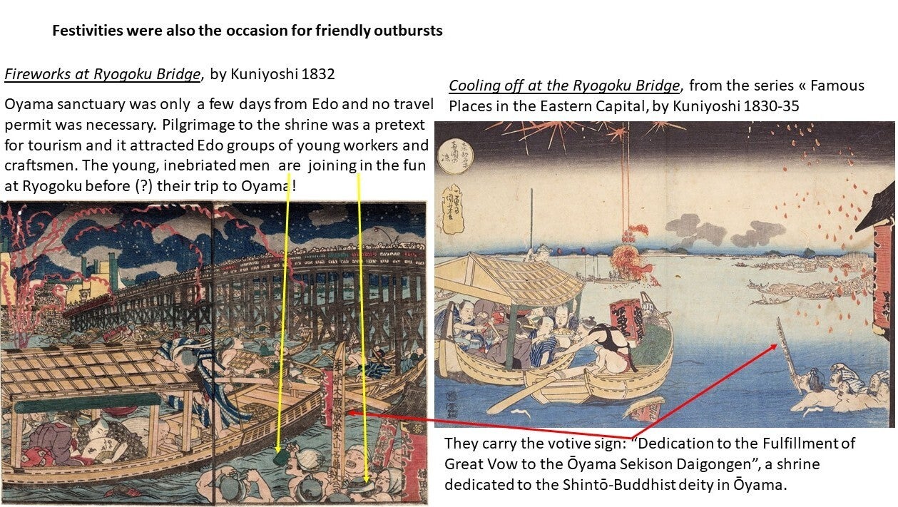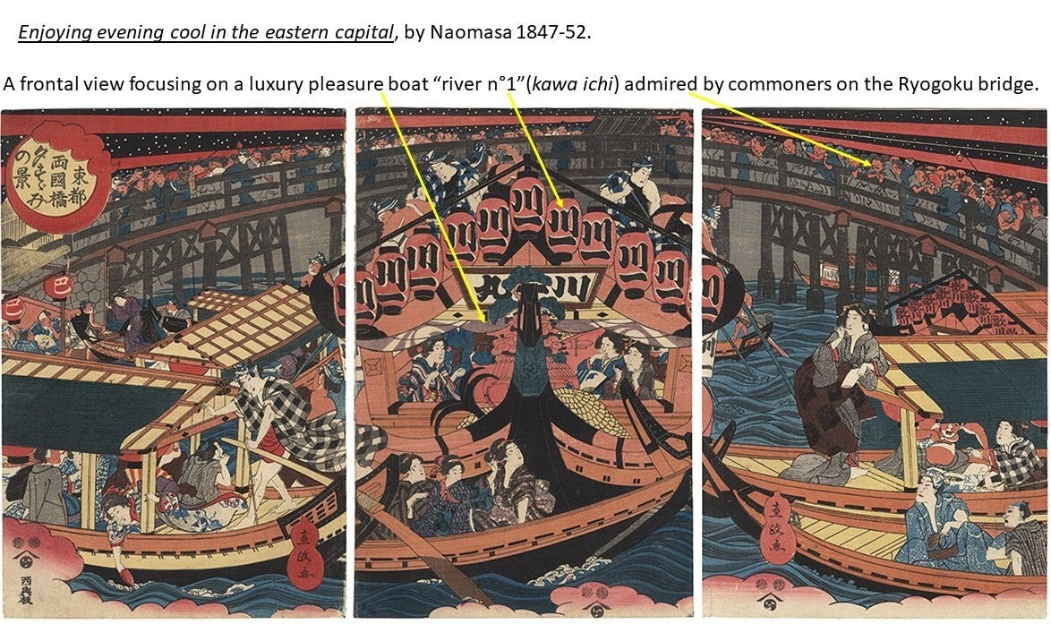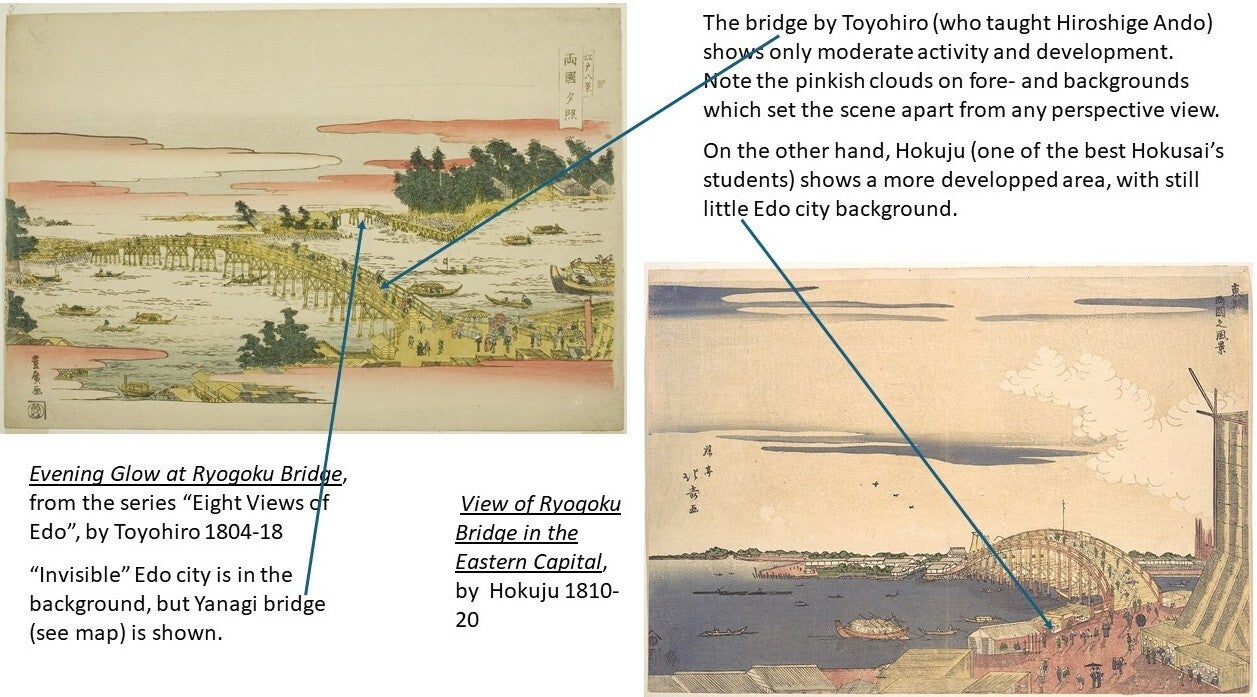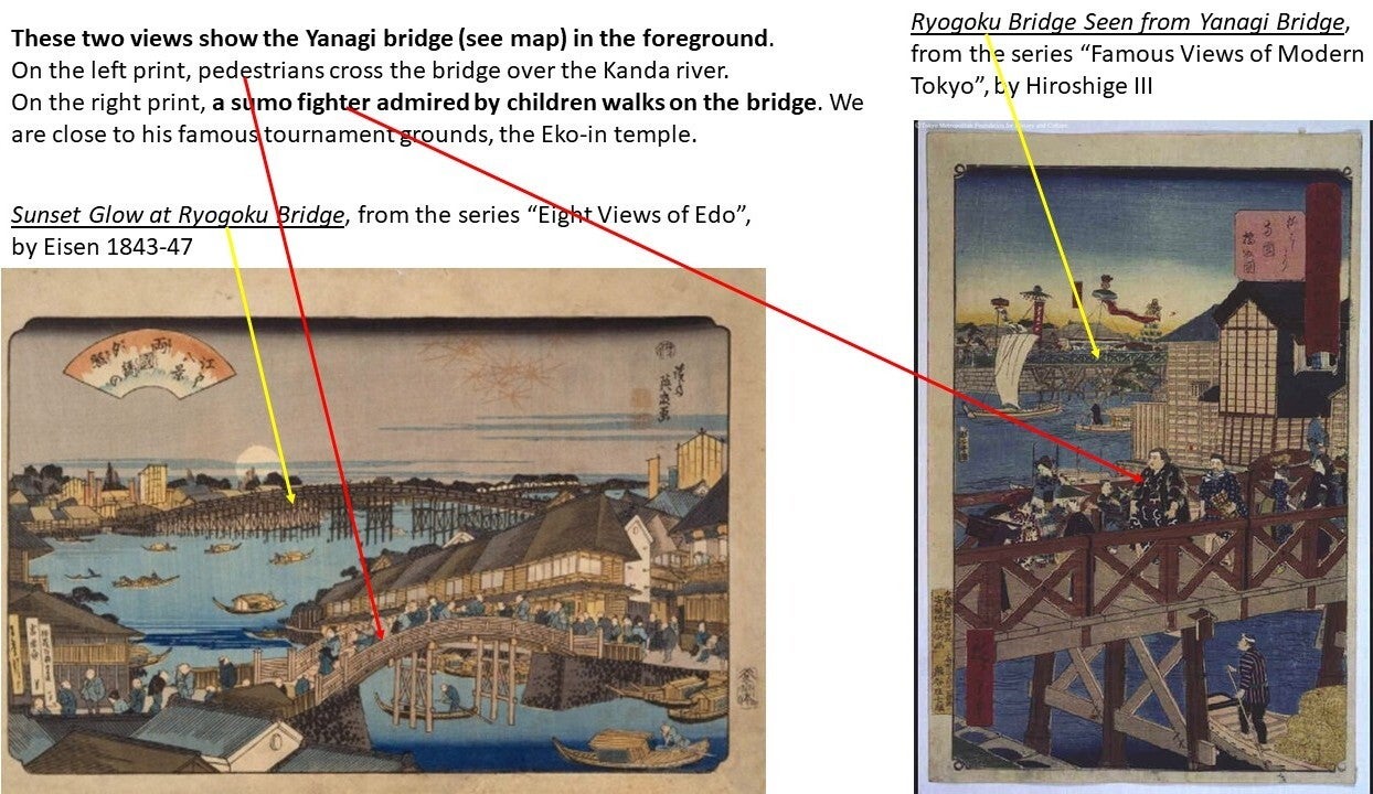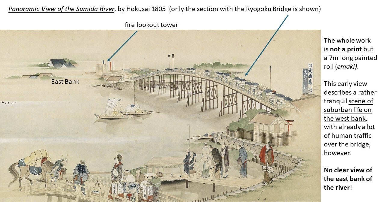 The great Hiroshige described the Ryōgoku Bridge in the 19th century as "the liveliest place in the Eastern Capital, with side-shows, theaters, story-tellers, and summer fireworks; day and night, the amusements never cease.“